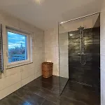 Moderne 4-Zimmer Wohnung Mit Balkon erbjuder gästerna bekvämligheter som hårtorkar, badlakan och handdukar i badrummet. Det finns också en duschkabin, en separat toalett och en tvättmaskin.